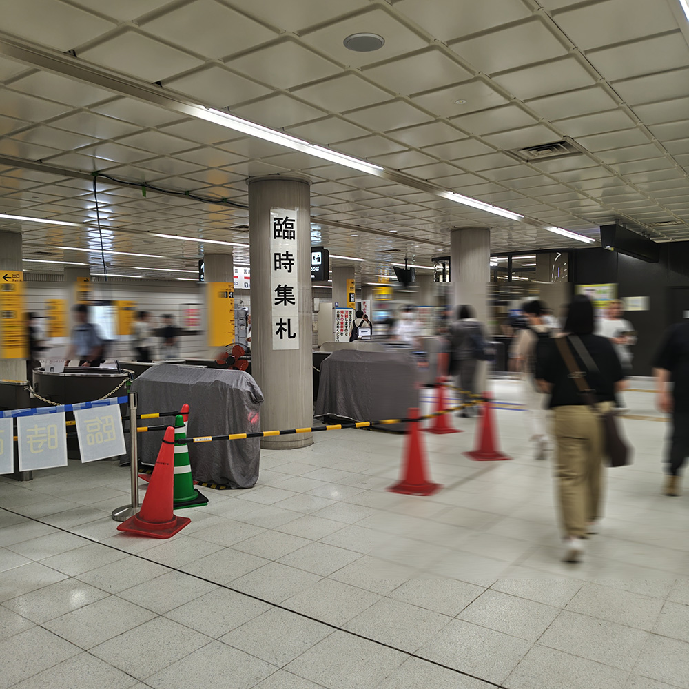 ▲臨時改札が閉まると少し寂しい…
