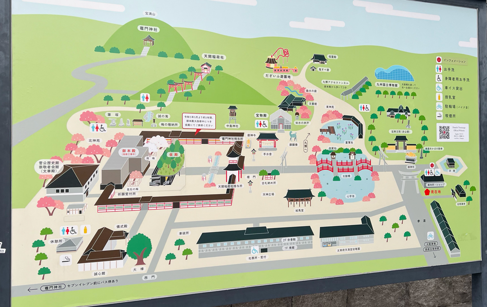 太宰府は歩いて回れるスポットが多いので、こういう看板があるとかなり助かります。
