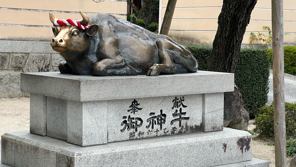 歩いて行くと行列ができていたのは、恒例の御神牛(ごしんぎゅう)。