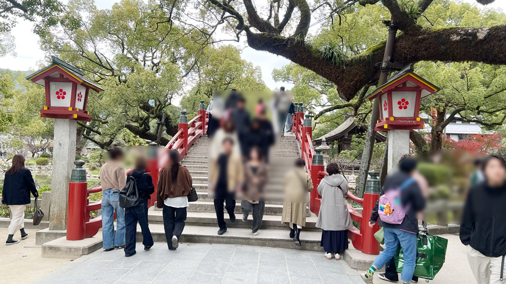 赤い橋(心字池の太鼓橋)で一気に太宰府らしさを感じる